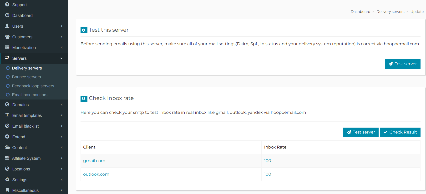 You have access to check delivery servers monitoring tools in the backend>delivery servers part